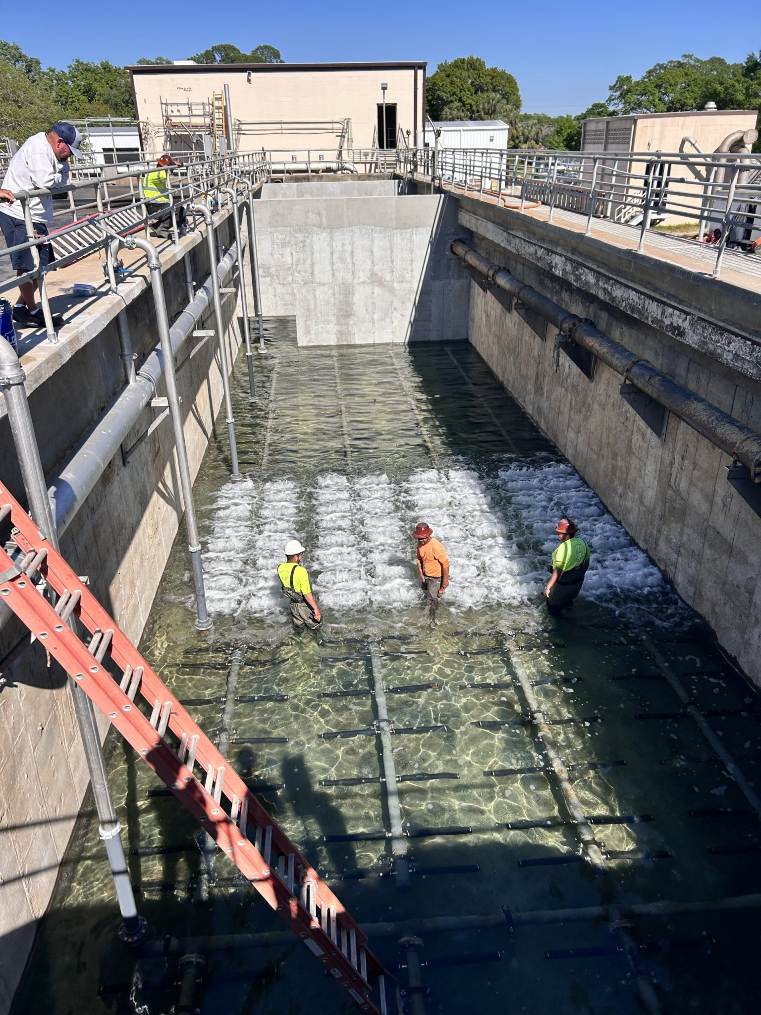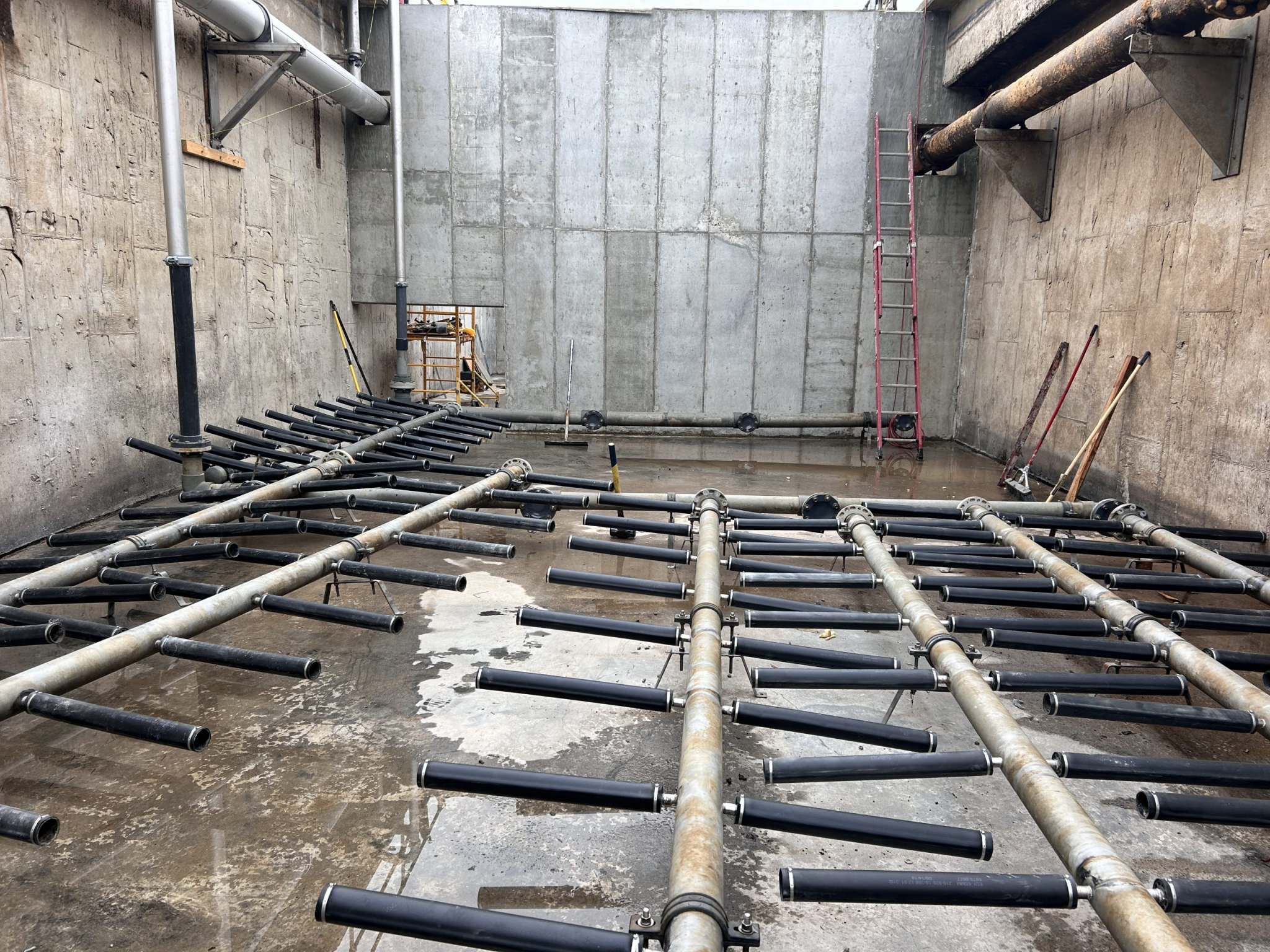 C&T Contracting rehabilitated the aeration system by installing three new blowers, installing a new electrical room, installed new SS air pipe, replaced existing baffle walls and upgraded aeration diffusers.